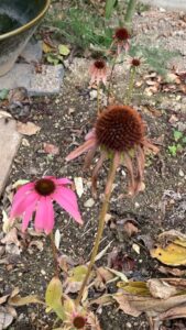 枯れ姿のまま花を抱くエキナセア。